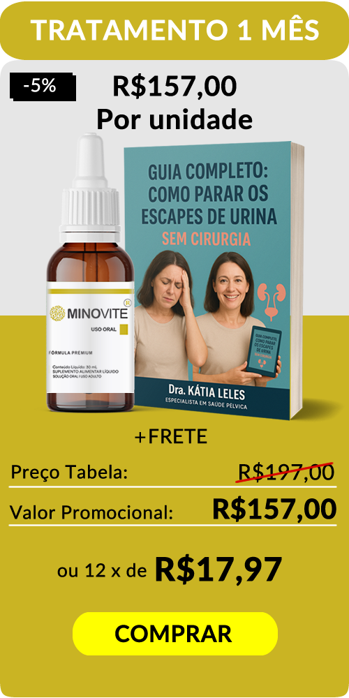 É COMPOSTO DE DUAS FRENTES: 1 - Nutracêutico em Gotas MINOVITE 2 - Livro GUIA COMPLETO: COMO PARAR OS ESCAPES DE URINA - SEM CIRURGIA